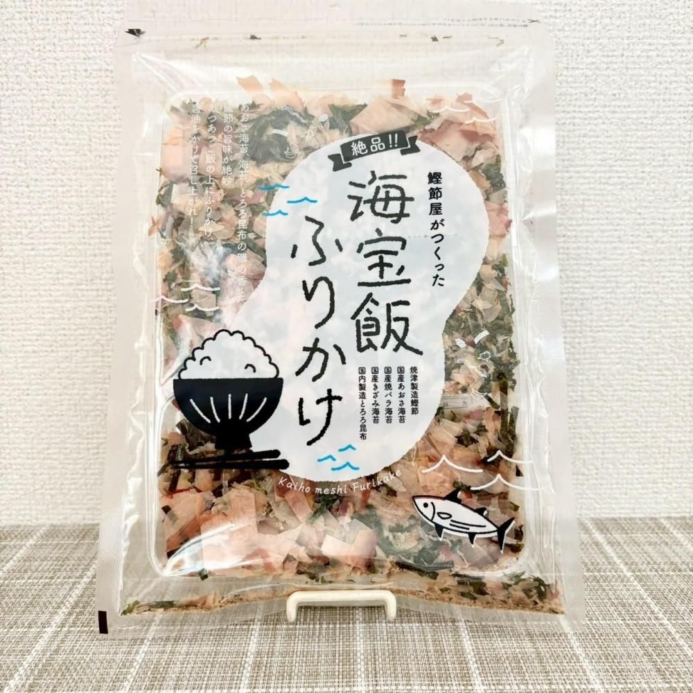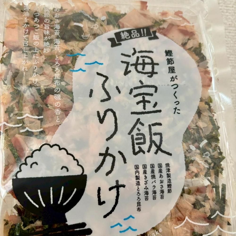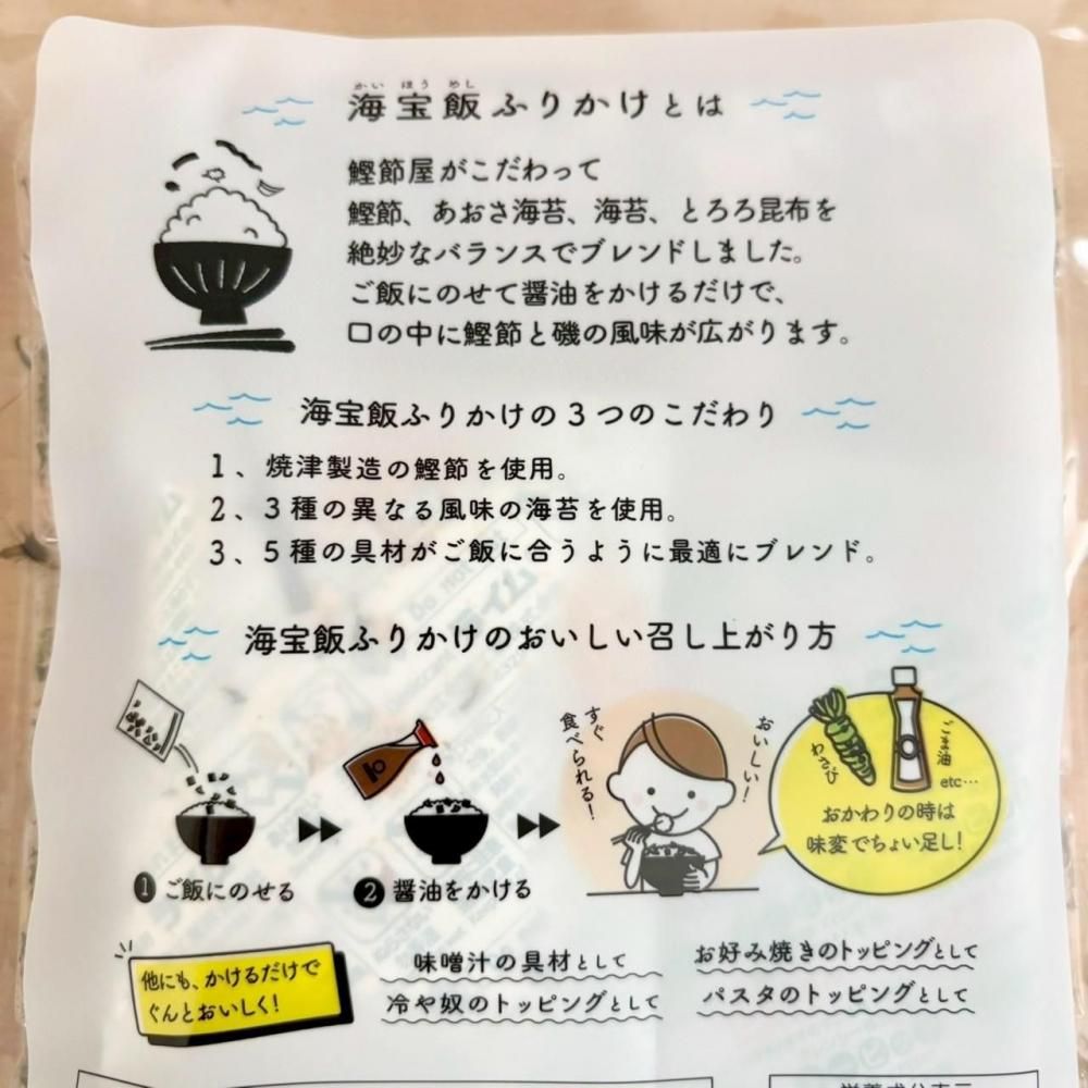 鰹節屋が誇る、国産のあおさ海苔、刻み海苔、とろろ昆布を贅沢にブレンドした「海宝飯ふりかけ」